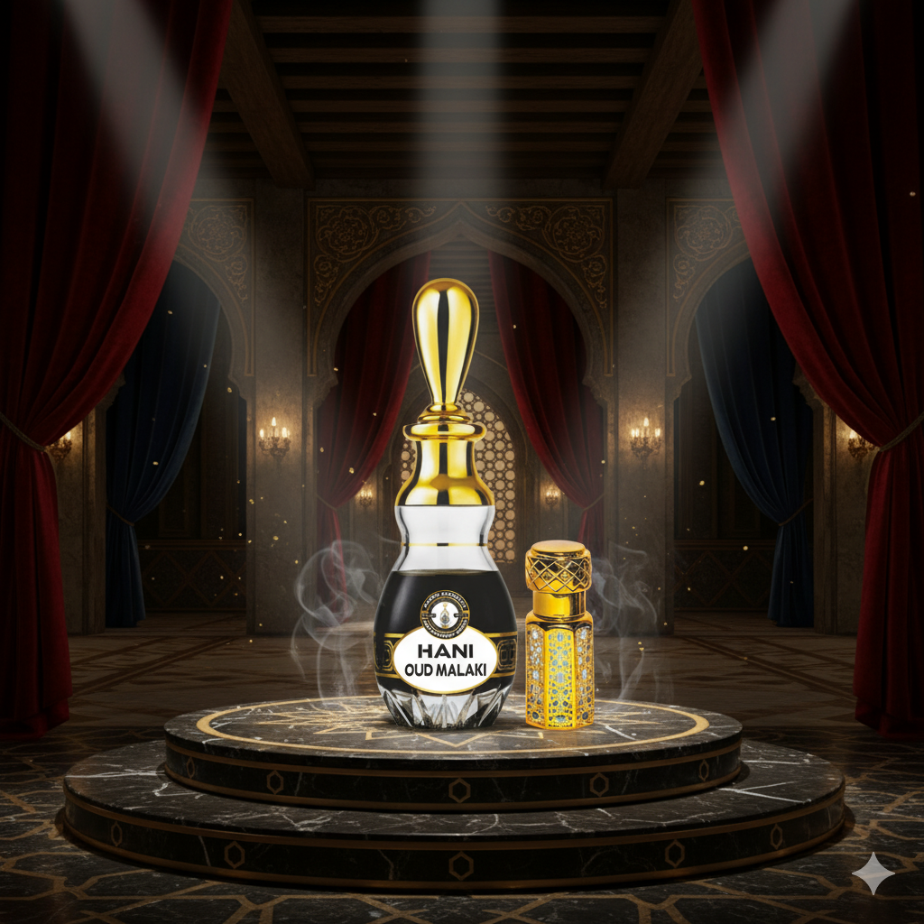 Hani Oud Malaki is a royal, powerful, and luxurious Arabic oud fragrance with deep woody, spicy, and amber-musk notes. Long-lasting, intense, and majestic — perfect for weddings, evening wear, cultural events, and lovers of strong Middle Eastern oud perfumes.